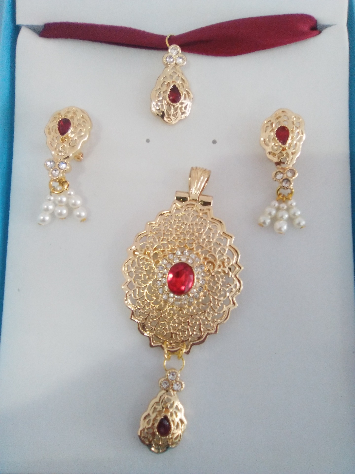 Compuesto por ; Pendientes,Colgante cuello y broche.