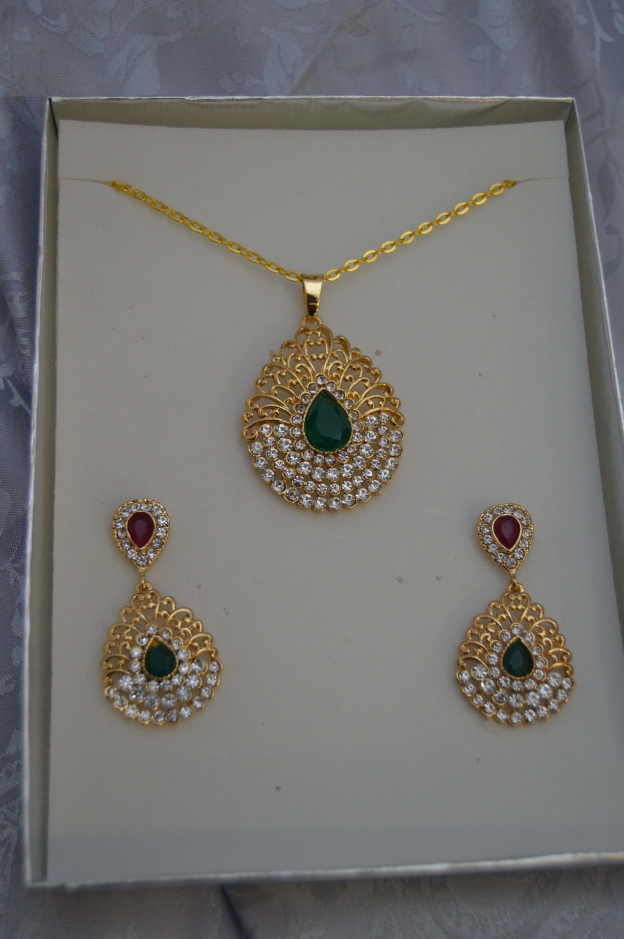 conjunto de pendientes y colgante para cuello